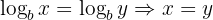 Log of One | ![]() | Log of the base to itself is always 1. |