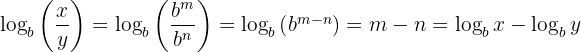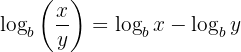 Quotient Rule | ![]() | Log of a quotient is the difference of the logs. |