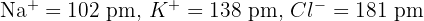 Calculate the difference in the sum of ionic radii for NaCl and KCl given the following data: