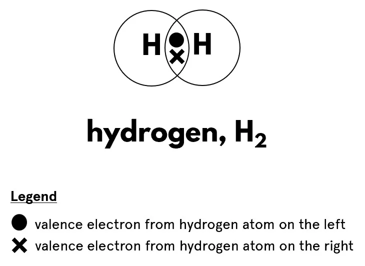 Water (H2O): Starting with Oxygen, it has six valence electrons and takes the central position. Flanking it are two Hydrogen atoms, each with a single valence electron. To represent this, draw six dots around the Oxygen and a cross next to each Hydrogen. To show the sharing of electrons, pair a dot with a cross.