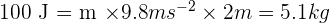 Therefore, the mass of the object is 5.1 kg when it has a gravitational potential energy of 100 J and is at a height of 2 meters above the ground.