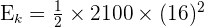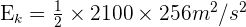 If a vehicle has a mass of 2100 kg and it is moving at a speed of 16 meters per second, then what amount of kinetic energy is stored in it?