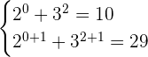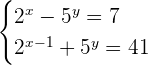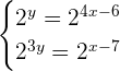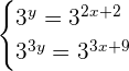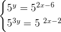 Since, the equations have same bases on the left and right side of the equations, so we can solve the exponents of this system by making them system of linear equations like this:
