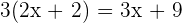 Solve the algebraic expression by multiplying 3 with ther term inside the parenthesis: