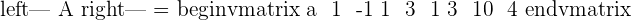 A represents the coefficient matrix and A' represents the augmented matrix. The next step is to find the determinants of both matrices.