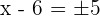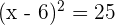 Take square root of both sides of the equation and solve the resulting equation for x: