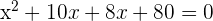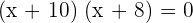 Hence -10 and -8 are the roots of the equation. To check our answer, we will substitute these values in the original equation: