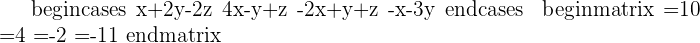 Take the system corresponding to the submatrix of order 3, which has a rank of 3, and solve it: