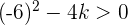 Calculate the values of k for which the roots of the equation x² − 6x + k = 0 are two real and distinct numbers.