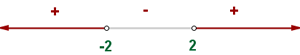 The second factor is always positive and nonzero, therefor, only consider the sign of the 1st factor.