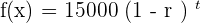 The initial price of the car is 15000 dollars. The car depreciates at an annual rate of 7%, so