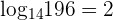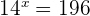The exponent we require on 14 to get 196 as an answer is 2, hence