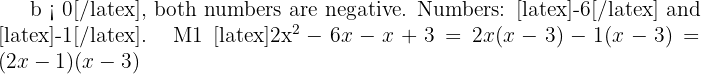 . Rewrite the middle term as two separate terms using those integers, then factorise by grouping.