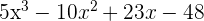 Multiply the root -2 by the new number 23 to get -46. Place this number -46 in the fourth column below -2 like this:
