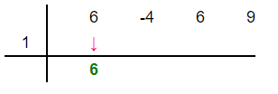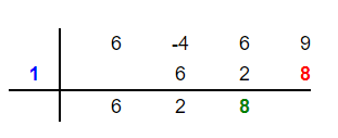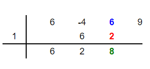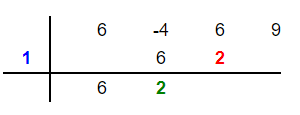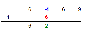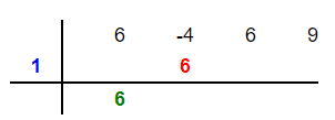 The coefficients of the dividend are 6, -4, 6 and 9. The root of the divisor is 1.