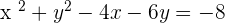 In this example, the coefficient of x is 4. First, we will divide it by 2 to get 2. Now, we will add the square of 2 to both sides of the equation. Similarly, the coefficient of y is 6. First, we will divide 6 by 2 to get 3, and take the square of 3 and add it to both sides of the equation.