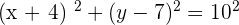 Write the equation of the circle whose center is at the point (-4, 7) and the circumference is 62.8 cm.