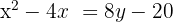 Find the equation of the parabola with directrix y = 0 and focus (2, 4).
