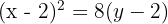 Vertex = (2, 2), p = 2, opens upward.