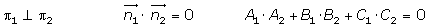Two planes are perpendicular if their normal vectors are orthogonal.