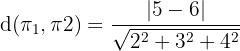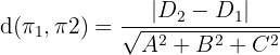 Substitute all the values in the below formula to compute the distance between two parallel planes: