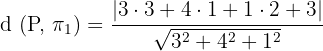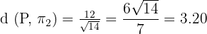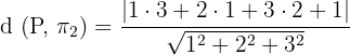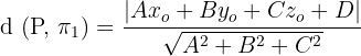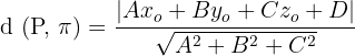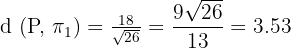 and point P. Use the following formula to compute the distance between the point and the plane.