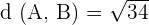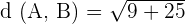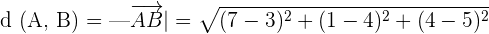 Calculate the distance between two point A (3, 4, 5) and B (7, 1, 4).