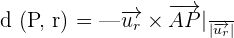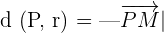 The distance from a point, P, to a line, r, tells us the minimum distance from the point to one of many points on the line.