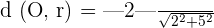 Calculate the distance between the line r whose equation is 2x + 5y + 2 = 0 and origin O.