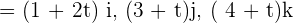 = (i + 3j + 4k) + (2ti + 1tj + 1tk)