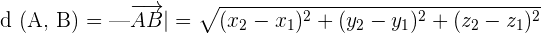 The minimum distance between two points in a three dimensional space is calculated using the following formula: