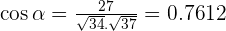 in the equation and whatever results, don't forget to find the cos inverse value of the answer to get the angles in degrees. For more clarification, we have a couple of examples which will help you to understand better.