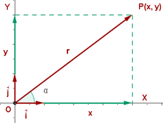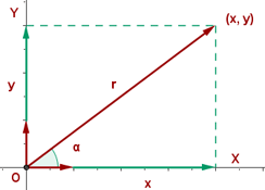 When the length, r, and the angle, α, (it makes with the x-axis), of the vector are known, the polar coordinates of P are