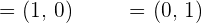 The two basis vectors are mutually perpendicular and their magnitude is one.