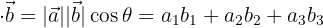 | cos(θ) = (a · b)/|a||b| | Angle between vectors | Scalar (angle) |