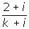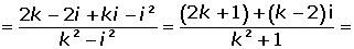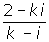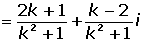 Calculate the value of k for the complex number obtained by dividing