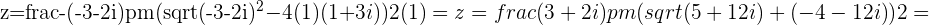 e. Use the Complex version of the Quadratic Formula to obtain the roots to the equation