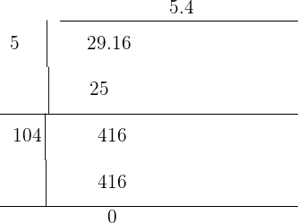 Following steps explain finding the square root of the decimal number 29.16 using a long division method: