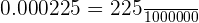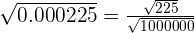 The square root of 225 is equal to 15 and the square root of 1000000 is equal to 1000. Hence, we can write the fraction like this: