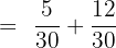 The denominator of the first fraction is 6 and the second fraction is 5. We will multiply 6 with the second fraction