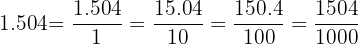 in the denominator as the number of places we moved the decimal point in the numerator.