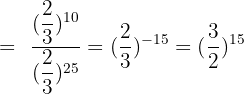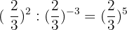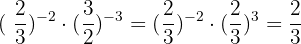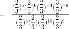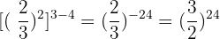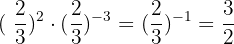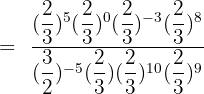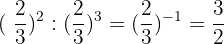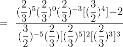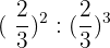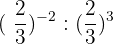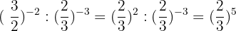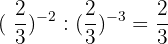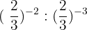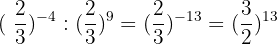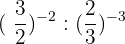 [(\frac{2}{3})^2]^{-2} : [ (\frac{3}{2})^3]^{-3} = (\frac{2}{3})^{-4} : (\frac{3}{2})^ {-9}