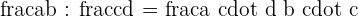 To divide the fractions, take the reciprocal of the second fraction and replace the sign of the division with multiplication simultaneously. Taking reciprocal means inverting fractions, so that the numerator becomes the denominator and denominators becomes the numerator. Mathematically, it is written as: