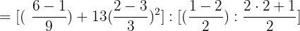 = (5 + 6 : 6 − 4 ) · (4 : 2 − 3 + 6) : (7 − 8 : 2 − 2)² =