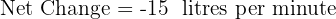 A tank contains 1000 litres of water. A pipe adds 25 litres per minute, but a drain removes 40 litres per minute. What is the volume of water in the tank after 30 minutes?