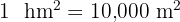 | square hectometre | hm² | 10,000 |