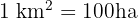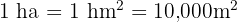 Hectare (ha): Equal to one square hectometre.