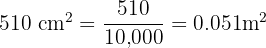 Then convert square metres to square centimetres: