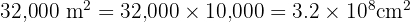 Convert 3.2 hectares into square centimetres.