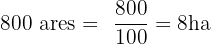 Convert 800 ares to hectares: